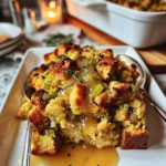 - Gravy: A rich gravy drizzled over the stuffing adds moisture and extra flavor, making every bite delightful.