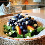 Experience the essence of summer with Blueberry Peach Feta Salad. This vibrant dish combines juicy peaches, sweet blueberries, and creamy feta cheese over a bed of mixed greens, all drizzled with a tangy balsamic vinaigrette. Perfect for warm-weather gatherings or as a refreshing side, this salad is not only delicious but also packed with nutrients that awaken your senses and brighten any meal.