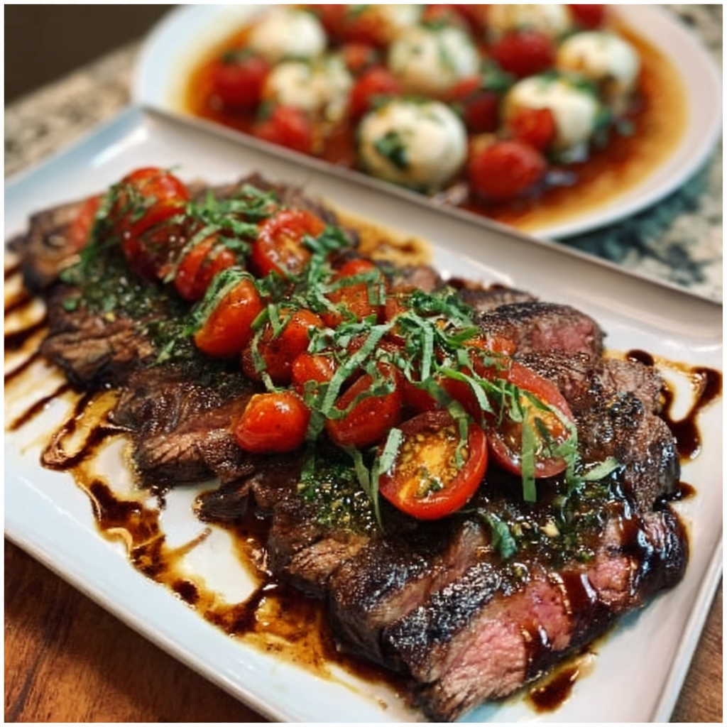 Savory Grilled Flank Steak Caprese with Balsamic Dressing