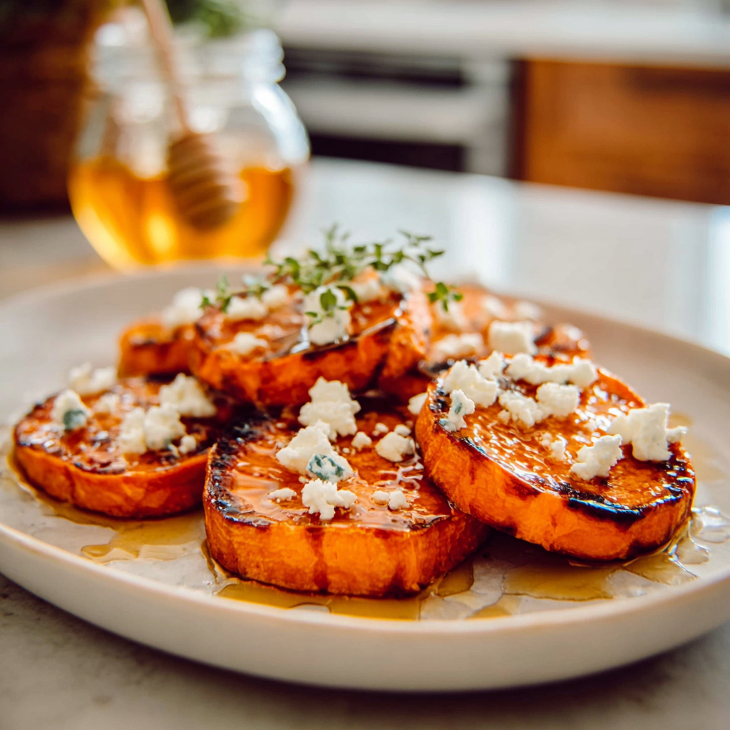 Irresistible Roasted Sweet Potato Rounds with Honey & Feta